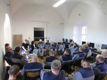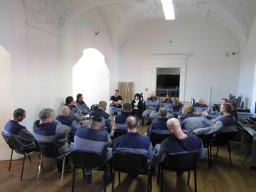 Ráno byl hrad zalitý sluncem a nás čekala skupina dvaceti odsouzených. Představit jim program OIKIA a nabízenou spolupráci bylo o poznání těžší než prezentovat to u vedení věznic. Zavrhli jsme uspořádání sálu do divadelního hlediště a vytvořili terapeutický kruh. Ukázalo se to jako fajn rozhodnutí. S každým bylo možné udržovat oční kontakt a reagovat na jeho repliky.