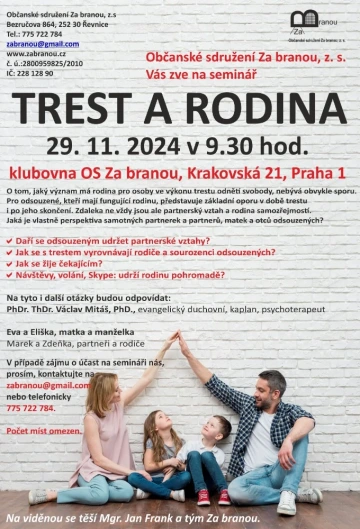 Občanské sdružení Za branou,. z.s. organizuje seminář Trest a rodina. Budeme u toho a zveme i vás...